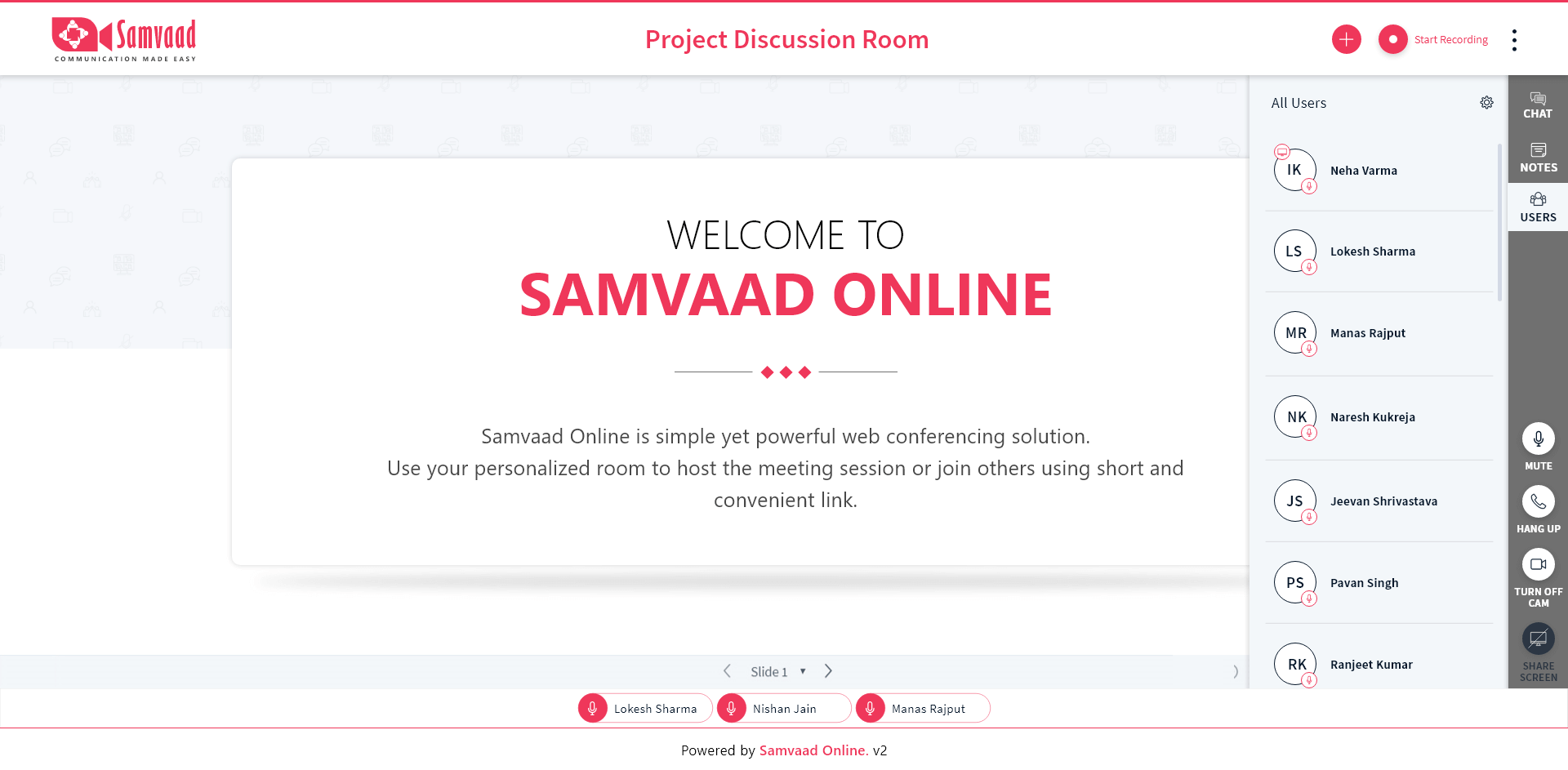 Samvaad Online is a powerful online web conferencing solution that makes it easy for businesses to collaborate and communicate with teams, clients, and partners around the globe. With Samvaad Online, you can hold video conferences, teleconferences, and team meetings with ease – all from the comfort of your computer or mobile device.